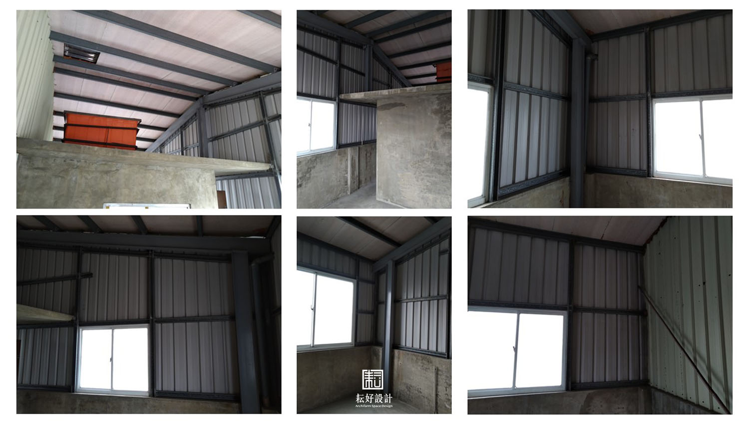 住宅現況是台灣常見的雙併式長型街屋,面寬窄、屋身長、樓梯置中。此案為街屋的邊間,側邊採光充足,惟臨地非永久空地,隨時有建造的可能。騎樓為停車空間、一樓前段為客廳、後段為廚房兼餐廳及浴廁、餐廚及浴廁設置有洗衣機、烘衣機、熱水器等功能性設備。二樓前後各為獨立雅房、衛浴設置於梯下。三樓前後同樣為獨立雅房、無設置預測。四樓為屋頂層增建,主要為儲物及洗衣工作間。