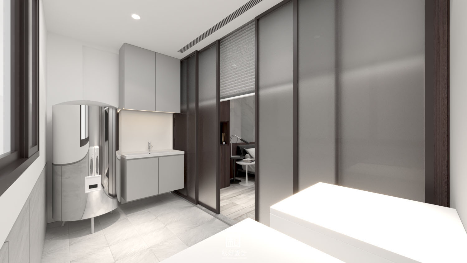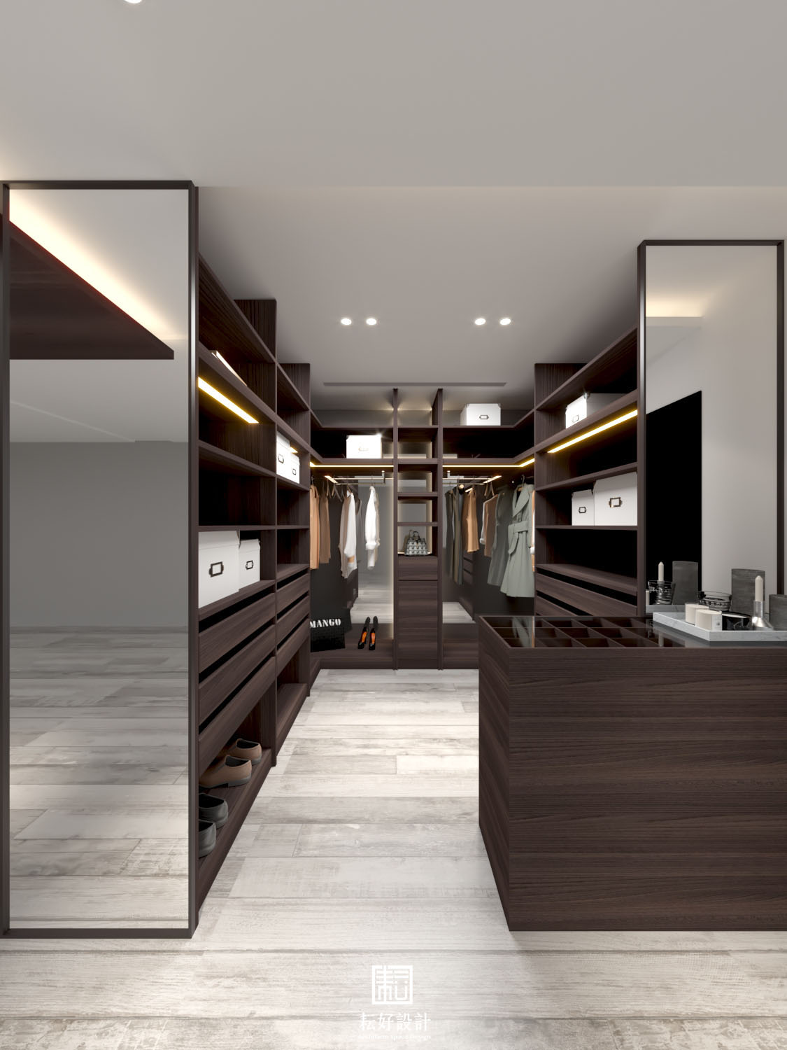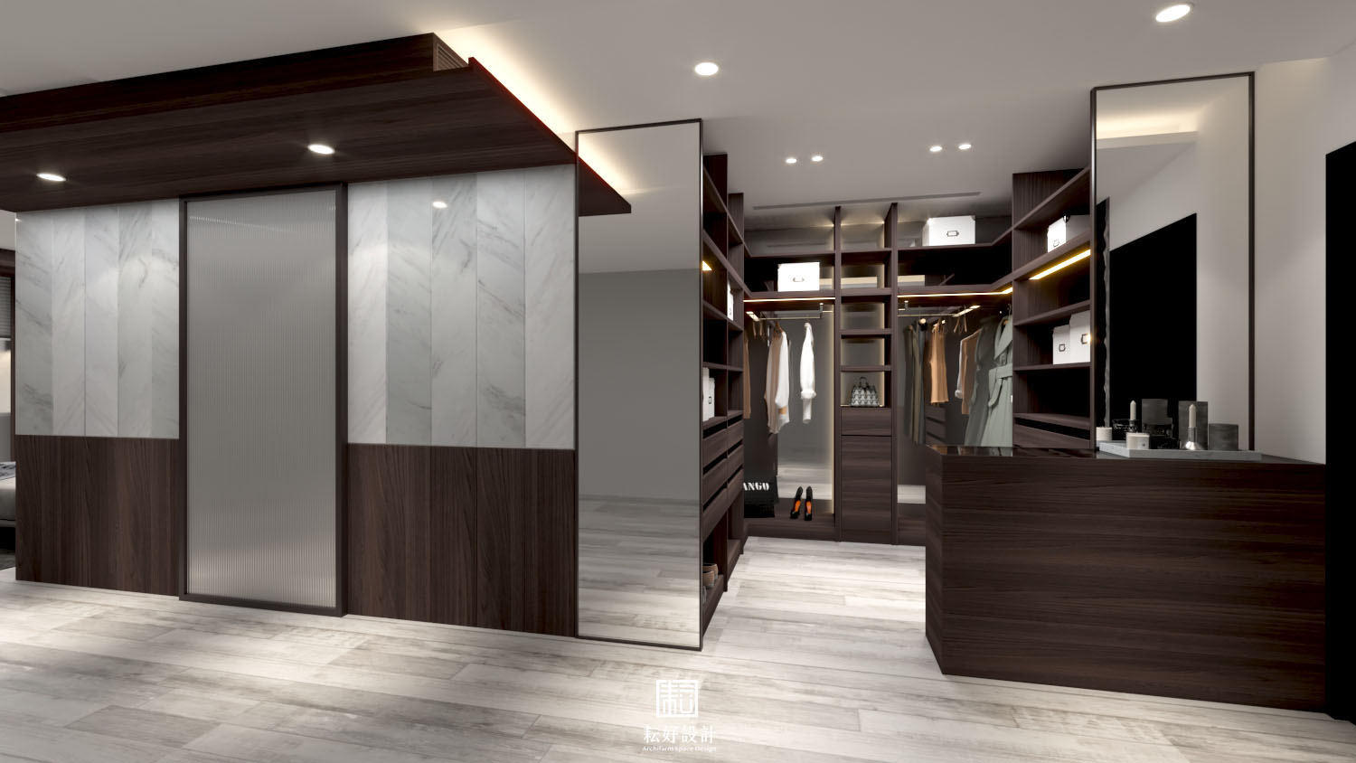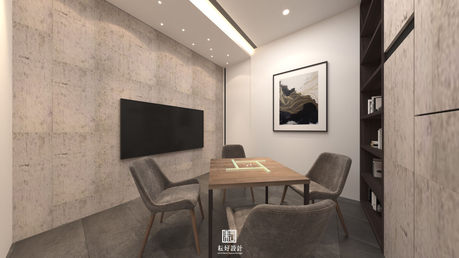 業主對生活品質有較高需求,整體風格以現代為基底,搭配沉色木紋、灰色系石材,為業主打造低調而內斂的空間。