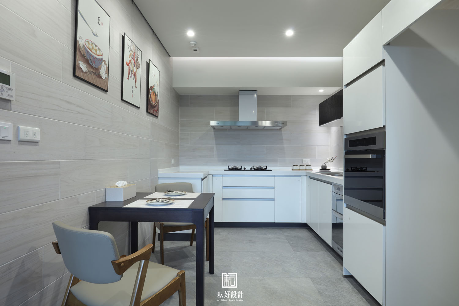 攝影:上影平面攝影工作坊 地點:台南市仁德區 用途:住宅 事務所:耘好設計 主持人:謝耕宇 參與者:張言濃、林佳妮、陳稚承 空間面積:52.3坪 主要建材:油漆、石材、實木皮、鐵件 設計日期:2020年12月至2021年7月 完工日期:2021年5月至2021年11月