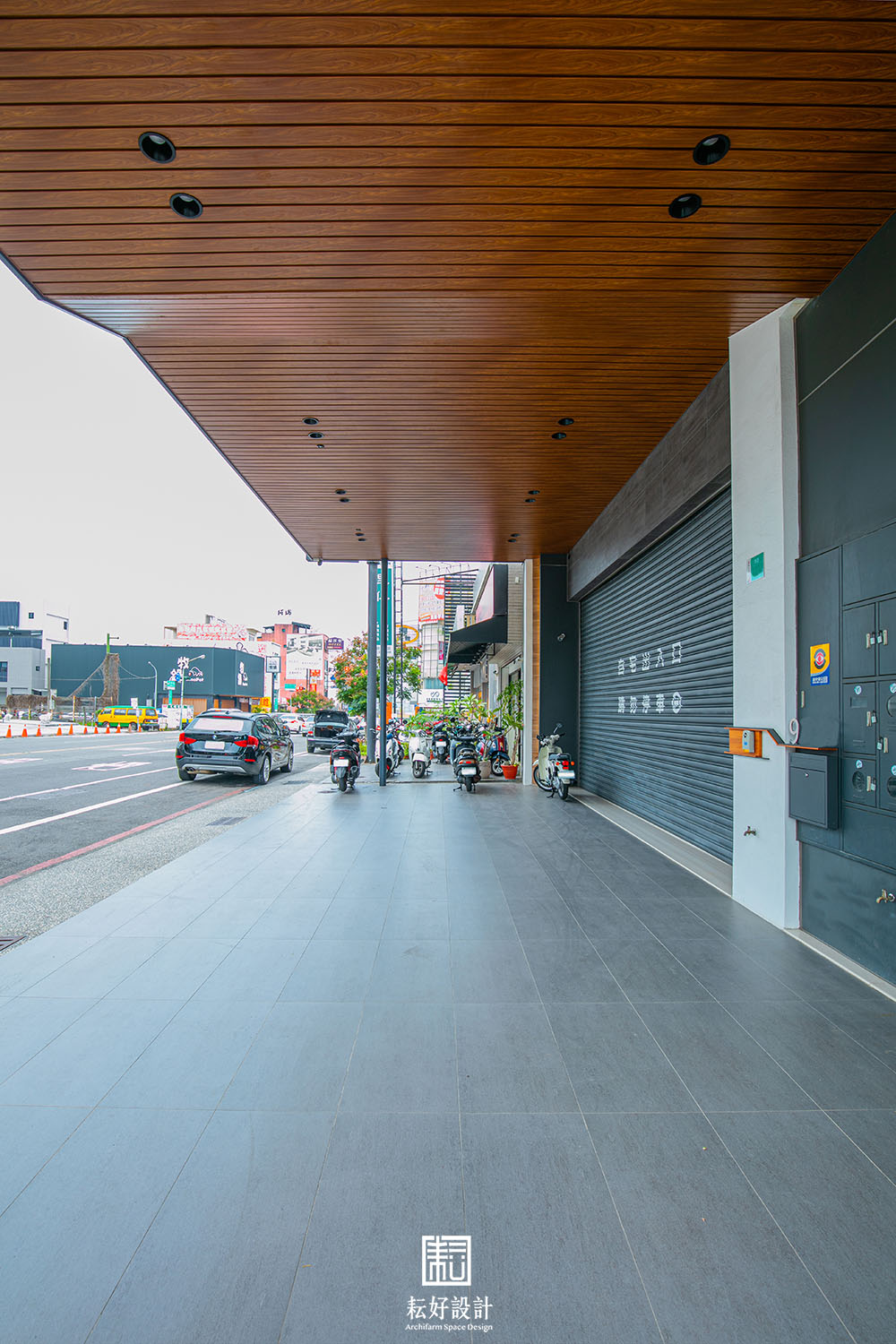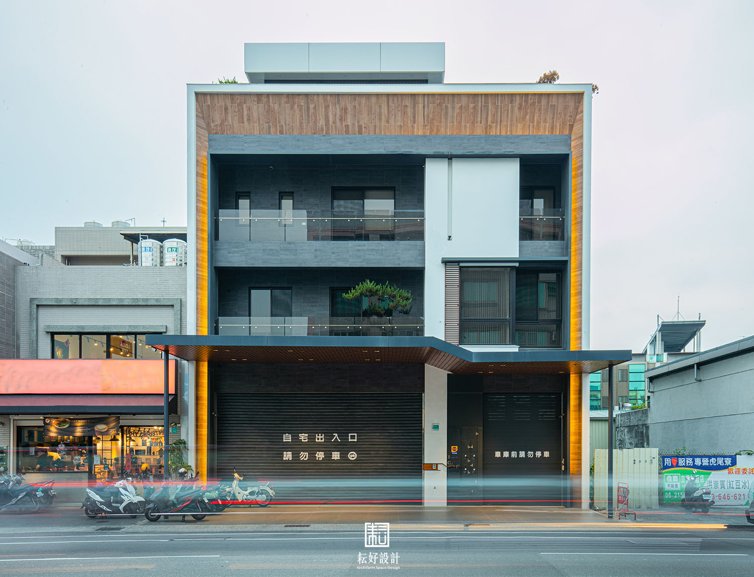 同時,我們以同樣的概念,為業主客製信箱門牌,並巧妙結合既有的水電錶箱,使其融入於立面整體設計。
